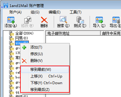 - 地址薄管理:调整地址簿、地址组的顺序。