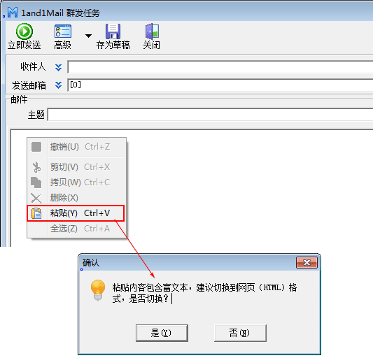 - 在邮件内容中粘贴网页(HTML)格式内容时,自动切换到网页(HTML)格式。