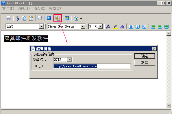 双翼邮件群发软件默认发送的是纯文本的邮件,不能添加超链接,需要切换到HTML(网页格式)的邮件才能添加链接,具体方法如下