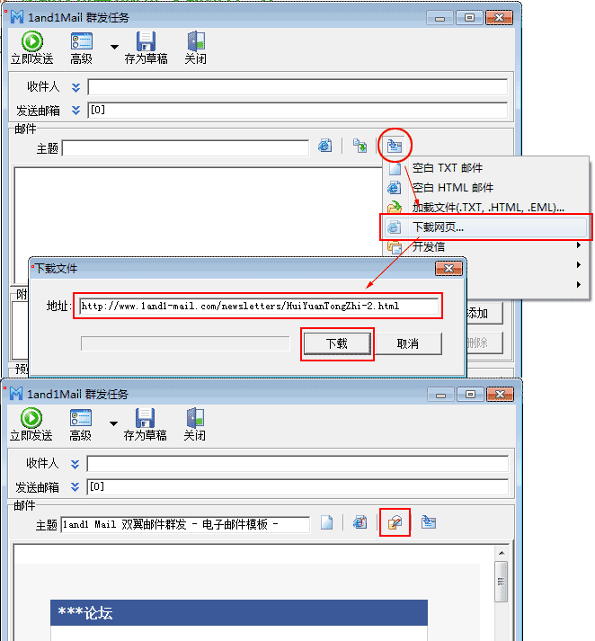 - 双翼软件提供的编辑功能比较简单,如果需要做复杂的修改,也需要将网页下载下来,经过编辑后再加载本机网页,方法:https://www.1and1-mail.com/bulk-email-blog/archives/451