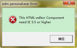 在安装有IE 10后,运行双翼软件会经常出现“This HTML-editor Componet need IE 5.5 or higher”错误窗口,如下图。