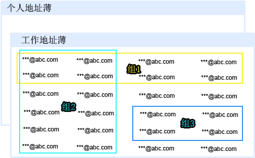 地址薄,组,邮件地址之间的关系