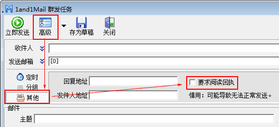 在使用双翼邮件群发软件群发邮件时,可以设置“要求阅读回执”,方法见下图,选上“高级”->“其他”->“要求阅读回执”。