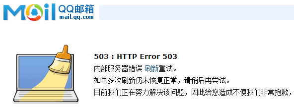 2014-1-21 上午 10:00访问qq邮箱(http://mail.qq.com),出现邮箱访问错误,如下图,知道11:45分中还未解决,期望qq邮箱快快恢复。