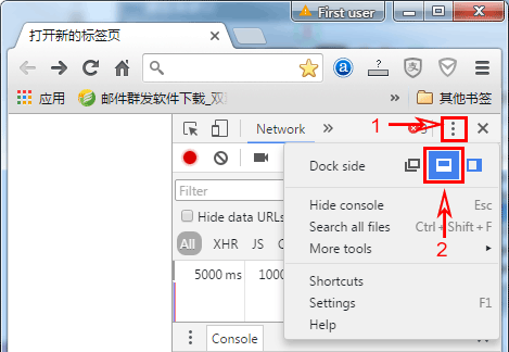 - 按F12(或Ctrl + Shit + I)打开开发者工具。(如果开发工具出现在右侧(如下图),可能会影响网页的显示,可以按下图操作将开发恐惧放在下方)