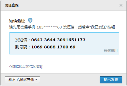第一步:会出现验证密保,根据邮箱密保设置不同,验证的方法也不同(密保问题,短信验证,扫描验证等),下图是通过手机短信验证密码。