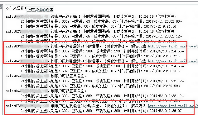 - 超过24小时还没有重新计时的账户:换IP前还没有轮到这些账户发邮件,显示上一次的结果。