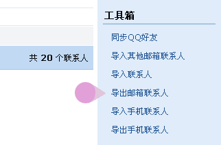 2)在窗口右下方的【工具箱】中选择【导出邮箱联系人】,如下图。